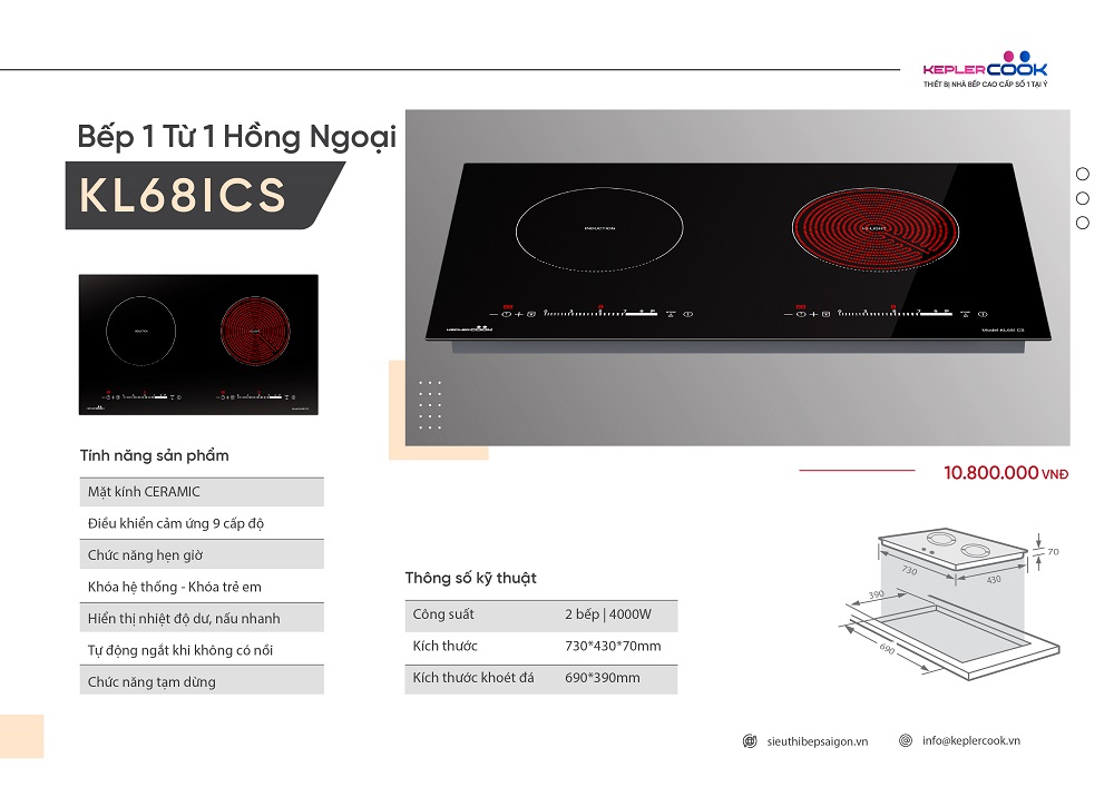 Thông số kỹ thuật của Bếp Từ Hồng Ngoại KeplerCook KL68ICS